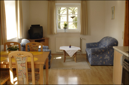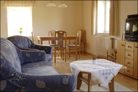 Die Ferienwohnungen liegen in einem separaten Fachwerkhaus, das ehemals ein Speicher war. Dieser wurde so umgebaut, dass er zeitgemäßen Komfort bietet, ohne seinen rustikalen Charme zu verlieren. Beide Wohnungen sind mit eigener Küche, Terasse, einem geräumigen Wohnraum und ein bzw. zwei Schlafzimmern ausgestattet. Alles praktisch und gleichzeitig wohnlich eingerichtet. |