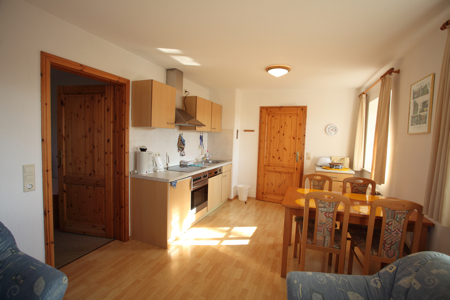 Wohnraum mit Essecke und Küche, Sat-TV, Dusche/WC und separates WC, 2 Schlafräume, eigene Terasse und eigener Eingang